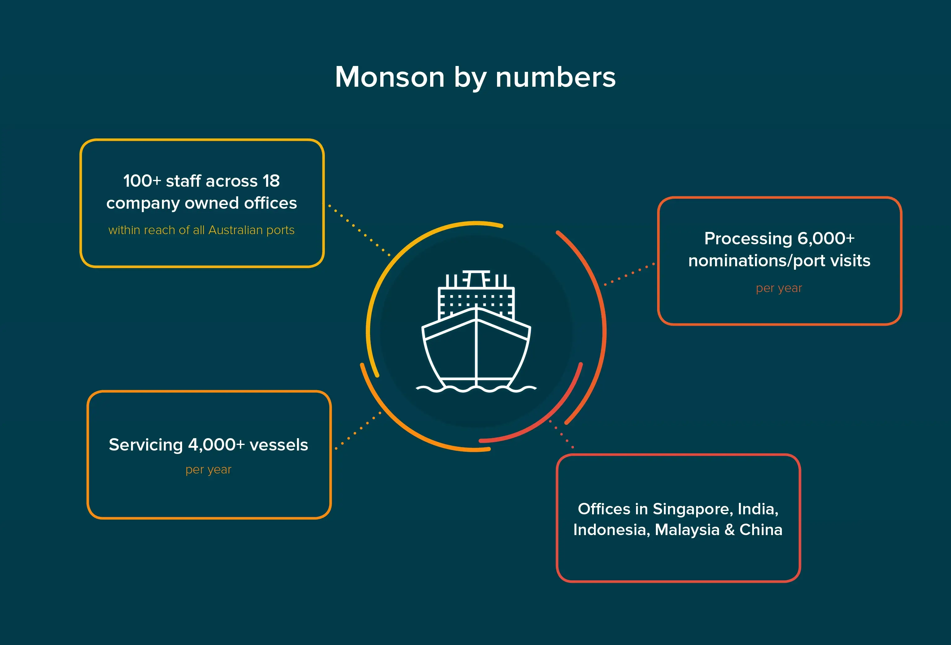 Monson is an Australian shipping agency that’s been servicing bulk vessels globally for more than 30 years. In a complex port environment where a ‘one size fits all’ approach is impossible, Monson provides a vital service - one point of personalised contact for shipping operators to get all their specific needs met when vessels call at all key ports in Australia.