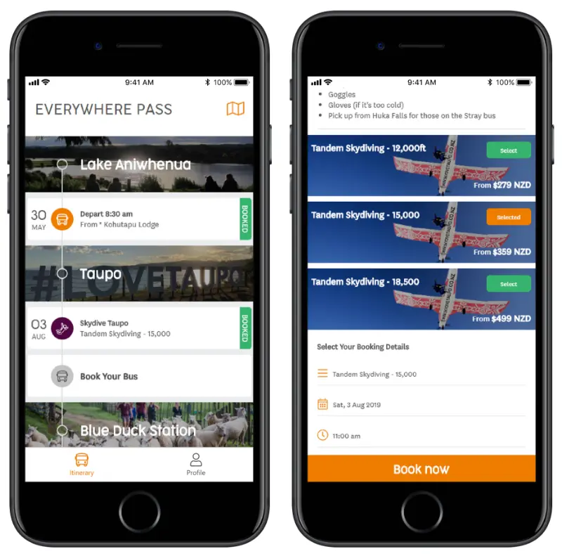 For Stray, a typical user journey is an overseas traveller purchasing a multi-day pass to explore a region of Australia or New Zealand. As a value-add, their traveller downloads the Stray Mate - branded app with their personalised travel itinerary pre-loaded.